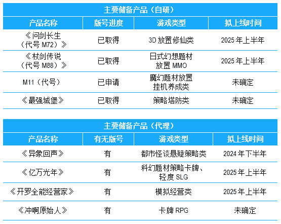 公司储备多款新品,,,,期待为玩家解锁更多新鲜体验,,,,部分产品如下表所示::